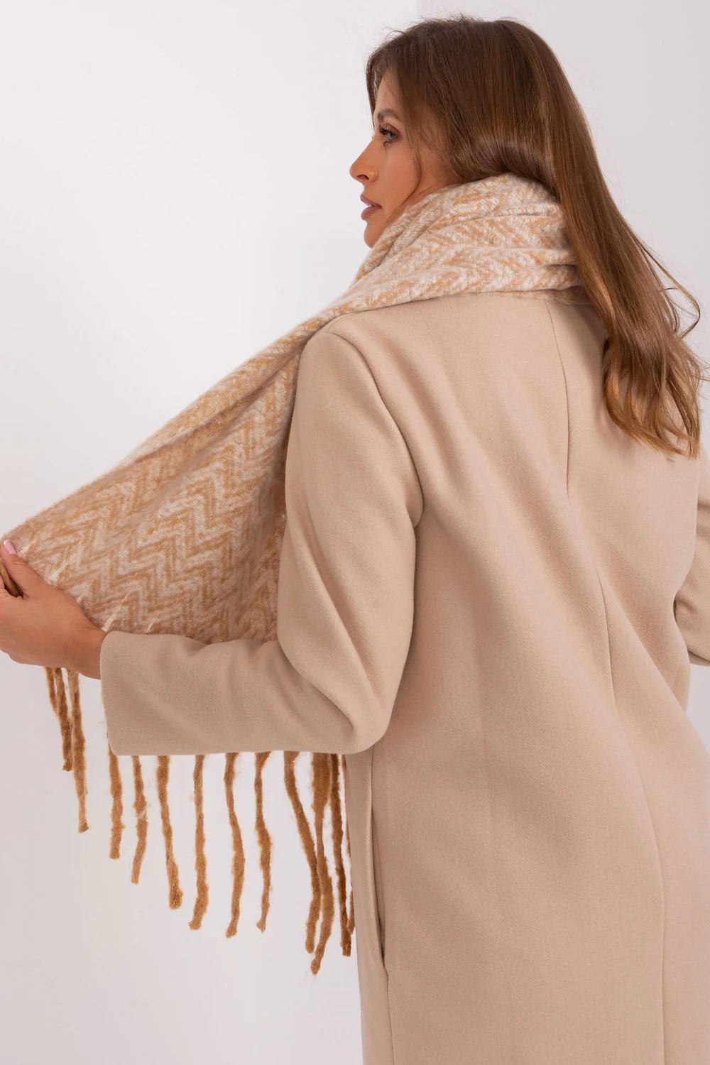 Ten dlouhý šátek s geometrickým vzorem je skvělým doplňkem do tvé podzimně-zimní garderóby. Vyrobený z odolného polyesteru, je nejen praktický, ale také stylový. Geometrický vzor dodává šátku moderní a atraktivní vzhled, díky čemuž skvěle ladí s různými stylizacemi. Franže mu dodávají jemnost a lehkost. Délka šátku umožňuje různé způsoby nošení, můžeš ho zavinout kolem krku, nechat volně spadnout na ramena nebo ho použít jako další vrstvu v chladnější dny. Bez ohledu na to, jak ho nosíš, tento šátek bude stylovým doplňkem tvé garderóby, přidávající charakter a teple.