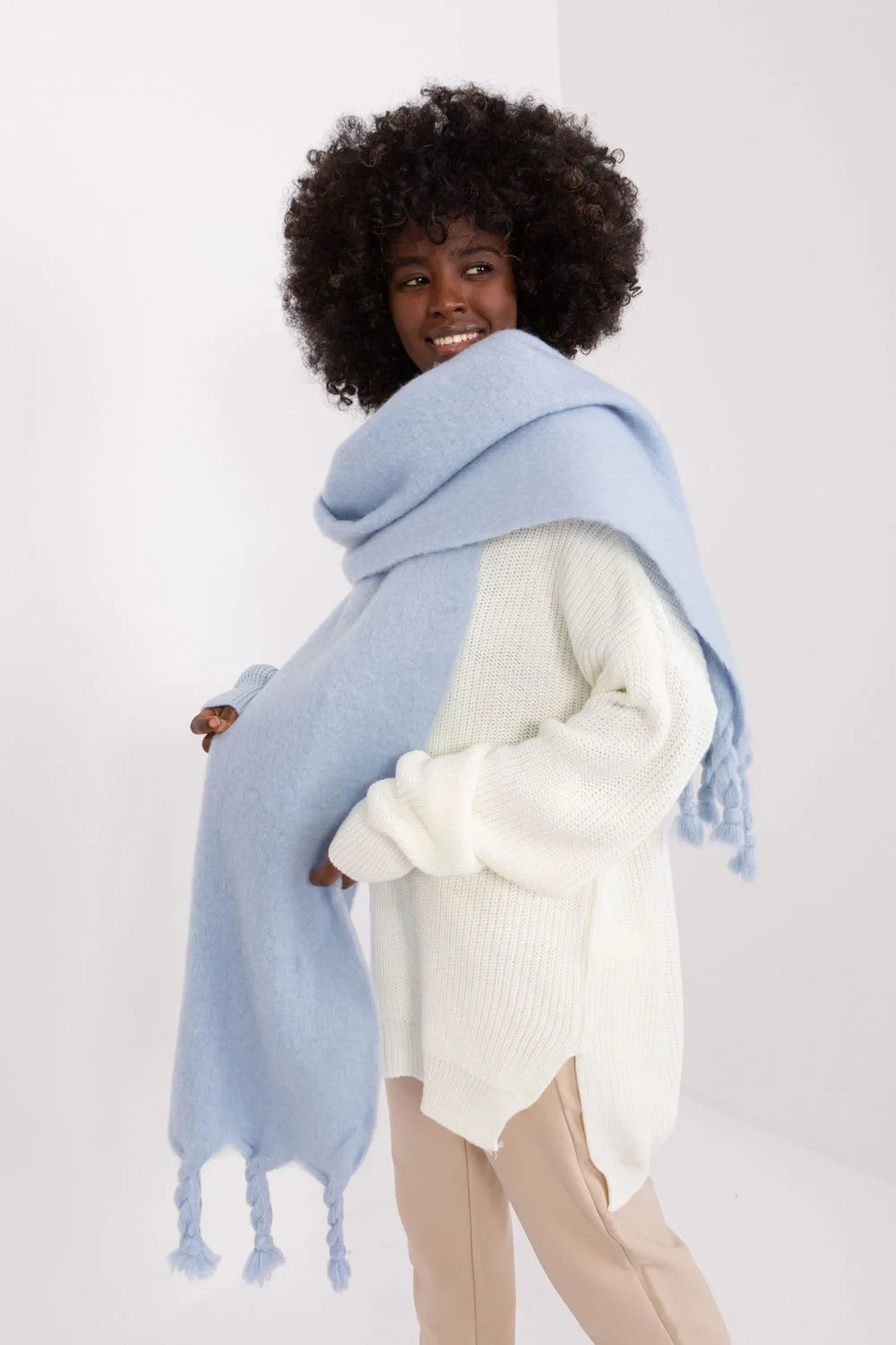 Tento dlouhý šátek s hladkou fakturou a délkou 210 cm je skvělým doplňkem k tvé podzimní a zimní garderobě. Vyrobený z odolného polyesteru, je nejen praktický, ale také stylový. Foulard mu dodává jemnost a lehkost. Délka šátku umožňuje různé způsoby nošení, můžeš si ho obvázat kolem krku, nechat volně viset na ramenou nebo ho použít jako další vrstvu v chladnějších dnech. Bez ohledu na to, jak ho nosíš, tento šátek bude stylovým doplňkem tvé garderoby, přidávajícím charakter a teplo.