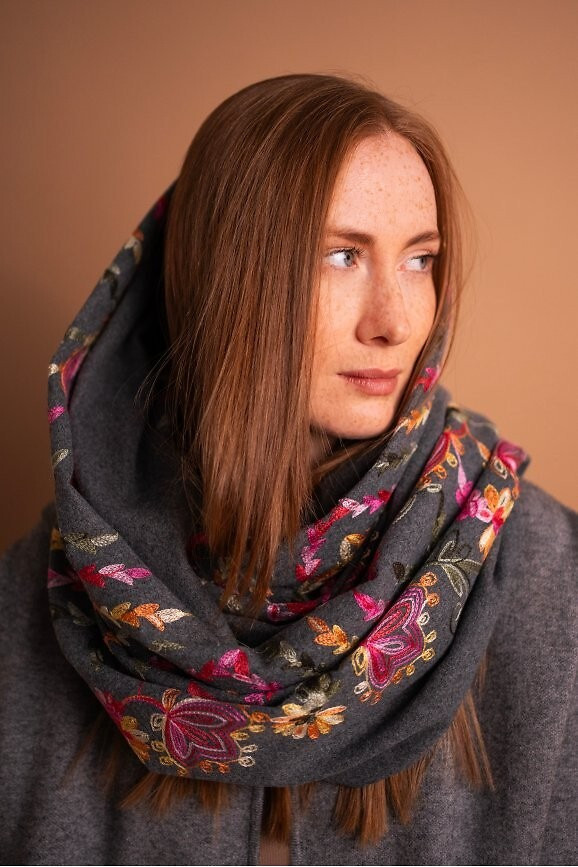 - lze přehodit kolem ramen a ukázat jedinečný vzor nebo se do něj zabalit v chladných dnech