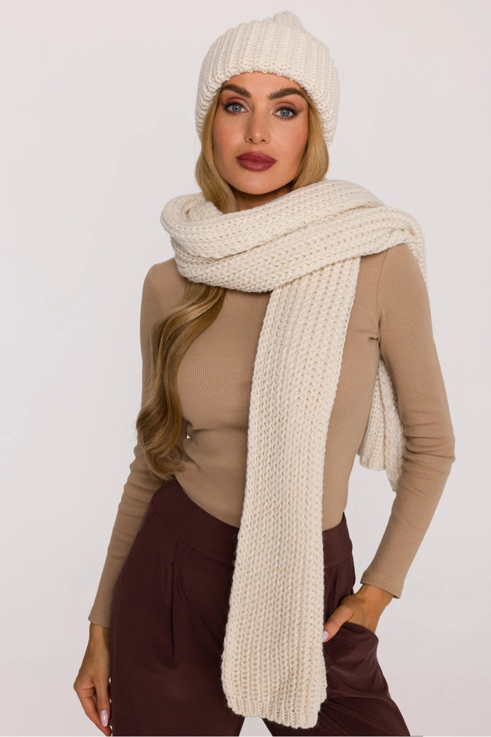 DLouhý, jednoduchý šátek vyrobený z měkké příze s hrubým proužkovaným vzorem. Široký a objímavý, poskytuje příjemné teplo a pohodlí v chladných dnech. Díky svým rozměrům, délka 170 cm a šířka 45 cm, se skvěle hodí jak pro každodenní, tak i pro elegantnější stylizace.