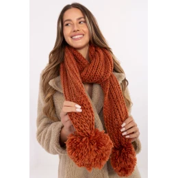 Měkký a příjemný šátek s hladkou fakturou, vyrobený z vysoce kvalitní akrylové látky, který účinně chrání před chladem a poskytuje pohodlí během zimních dní. Model má délku 186 cm a šířku 33 cm, co umožňuje volné zavinutí kolem krku a vytváření různých stylizací. Na koncích šátku jsou roztomilé mašle, které mu dodávají lehkost a módní charakter. Jedná se o ideální doplněk na chladné dny, praktický a zároveň stylový prvek zimního šatníku.