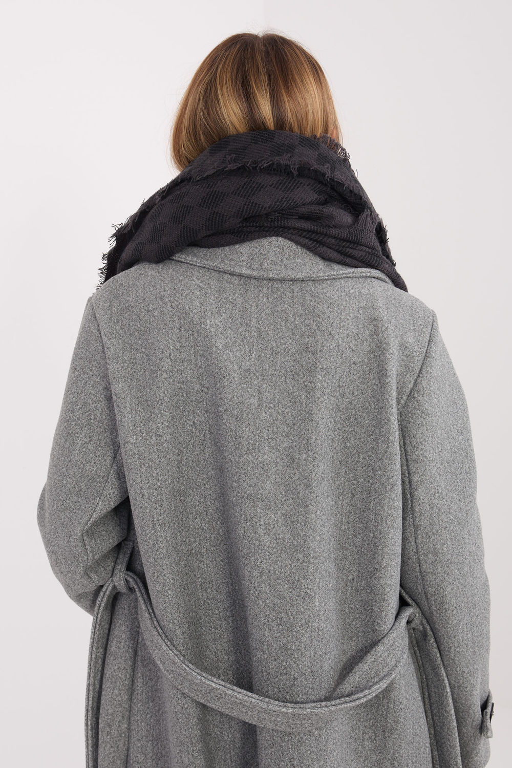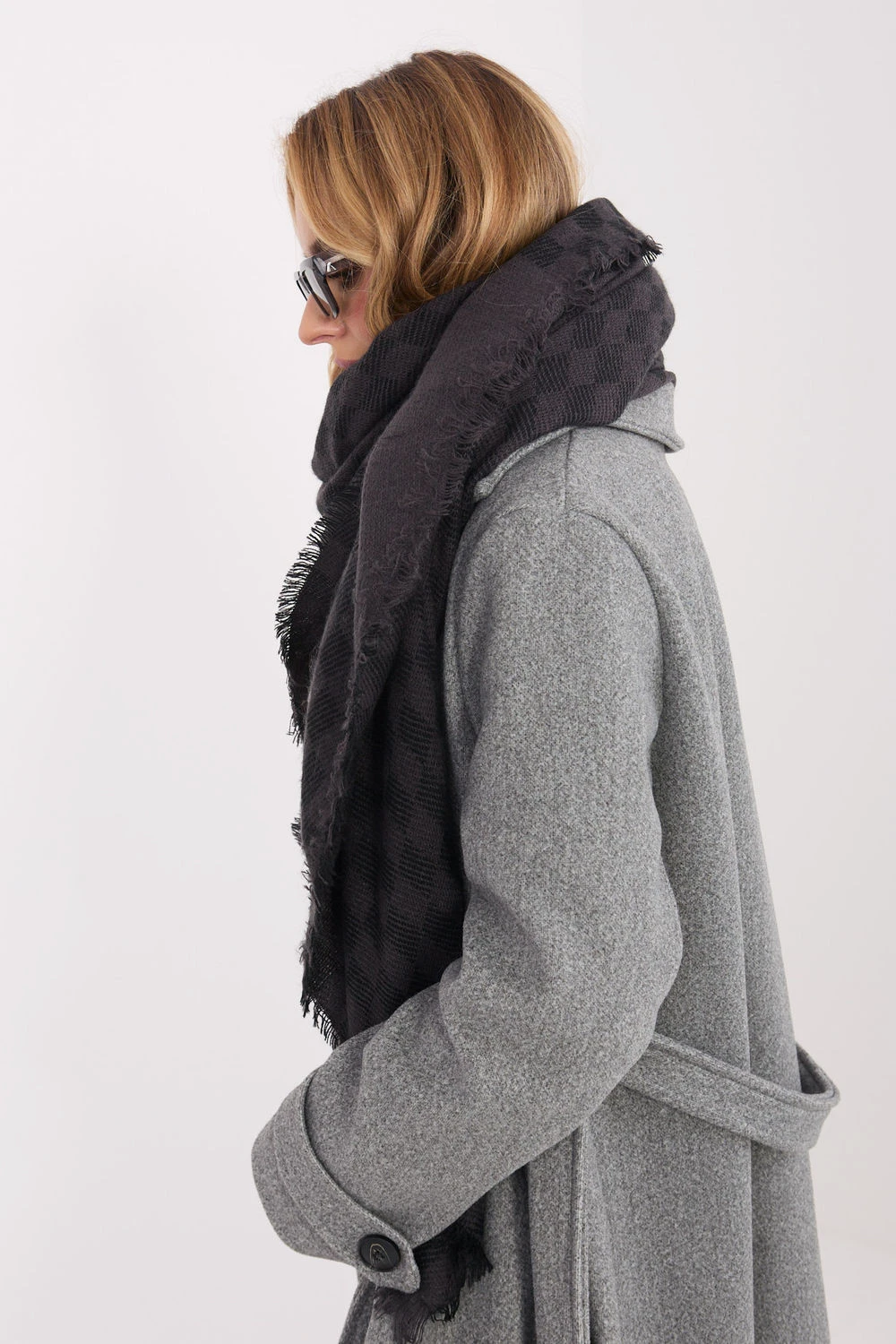 Šátek vyrobený z vysoce kvalitní směsi viskózy a vlny ohromuje příjemnou strukturou na dotek a elegantním zpracováním. Jeho geometrický, dominující vzor dodává celku moderní charakter. Model má impozantní rozměry 148 × 148 cm, díky čemuž ho lze nosit různými způsoby, jak jako klasický šátek, tak jako stylový šátek. Další šarm přidávají jemné franže, které zdůrazňují lehkost a volnost stylizace.