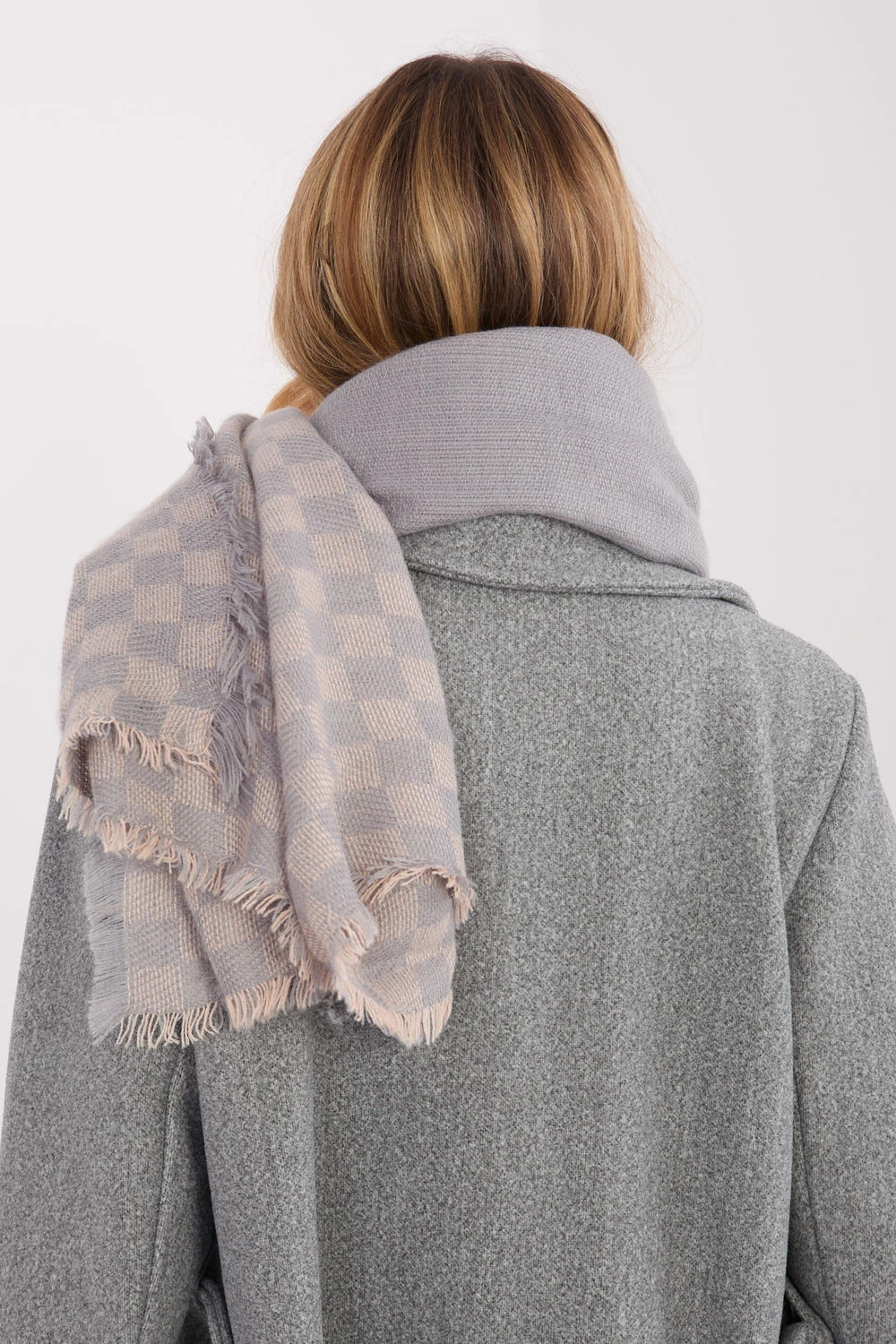 Šála vyrobená z vysoce kvalitní směsi viskózy a vlny ohromuje příjemnou strukturou na dotek a elegantním provedením. Jeho geometrický, dominující vzor dodává celku moderní charakter. Model má impozantní rozměry 148 × 148 cm, díky čemuž je možné ji nosit mnoha způsoby, jak jako klasický šátek, tak i stylový šátek. Dalšímu šarmu dodávají jemné řasy, které zdůrazňují lehkost a svobodu stylizace.