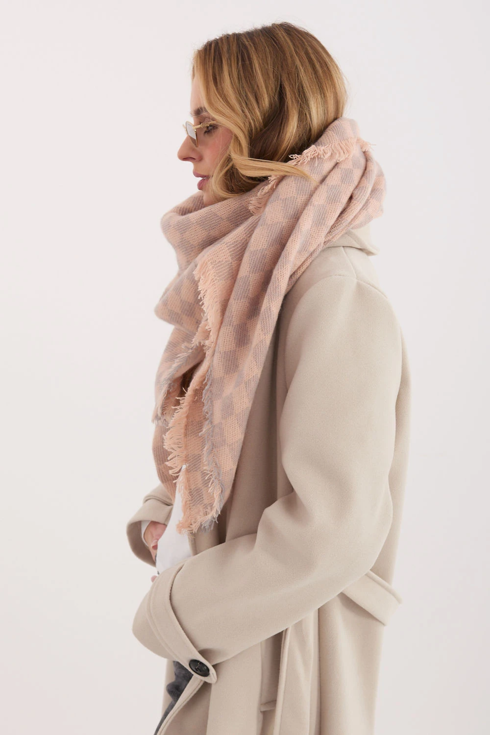 Šátek vyrobený z vysoce kvalitní směsi viskózy a vlny ohromí příjemnou strukturou na dotek a elegantním dokončením. Jeho geometrický, dominantní vzor dodává celku moderní charakter. Model má impozantní rozměry 148 × 148 cm, díky čemuž ho lze nosit různými způsoby, jak klasický šátek, tak stylový šátek. K dokonalosti přispívají jemné lemy, které zdůrazňují lehkost a svobodu stylizace.
