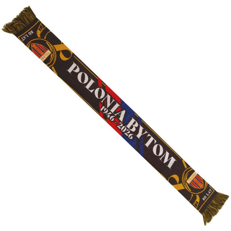 Szal Polonia Bytom – 80 Lat Hokeja Jubileuszowy symbol dumy i tradycji Szal Polonia Bytom – 80 Lat Hokeja to wyjątkowy gadżet stworzony z okazji jubileuszu klubu, podkreślający jego bogatą historię i sportowe dziedzictwo. Elegancki design z motywami rocznicowymi, herbem Polonii Bytom oraz napisem „80 LAT” sprawia, że szal stanowi nie tylko praktyczny element garderoby, ale również cenną pamiątkę dla każdego kibica. Starannie dobrana kolorystyka i wyraziste detale nadają mu prestiżowy charakter. Główne cechy: Edycja jubileuszowa: Projekt upamiętniający 80 lat hokejowej historii Polonii Bytom. Klubowe emblematy: Herb drużyny oraz rocznicowe grafiki podkreślają przywiązanie do tradycji. Stylowy, kolekcjonerski design: Połączenie klasycznych barw z nowoczesnymi elementami graficznymi tworzy ponadczasowy wygląd. Komfortowy materiał: Miękka tkanina zapewnia ciepło i wygodę podczas meczów oraz codziennego noszenia. Szal Polonia Bytom – 80 Lat Hokeja to wyjątkowa pamiątka, która pozwala z dumą celebrować historię klubu i wspierać go w każdym sezonie.