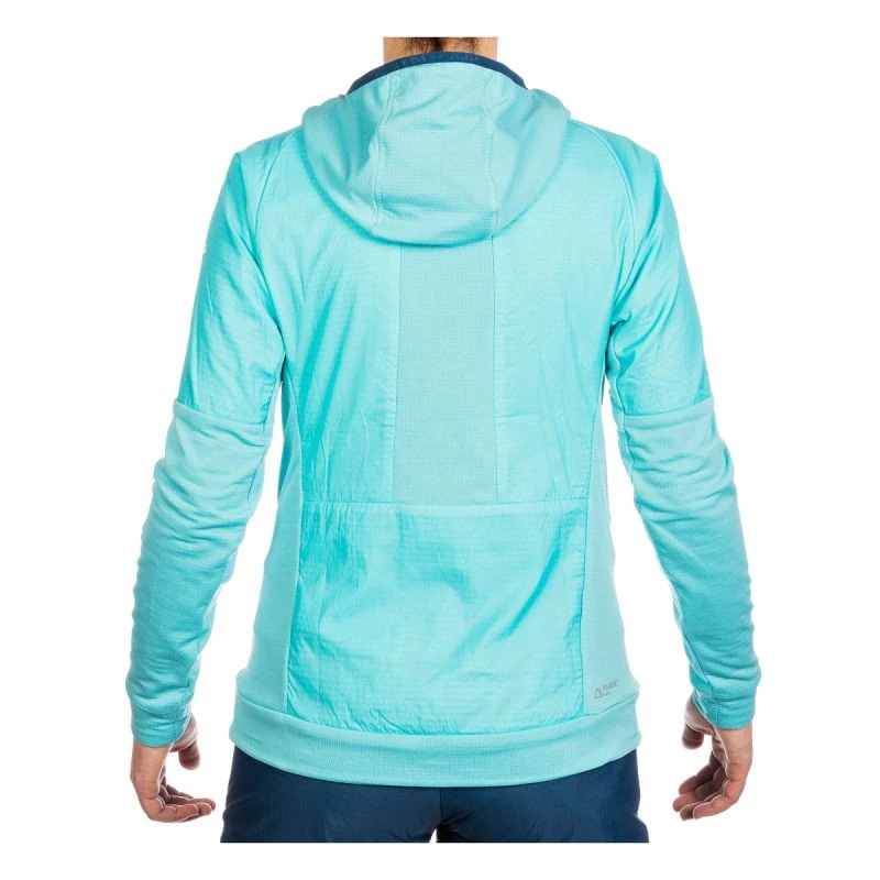 Je navržena v souladu se systémem mapování těla společnosti SALEWA, který využívá cílené materiály v různých částech těla tak, aby poskytoval požadovaný výkon v každé oblasti. Jako hybridní mikinu ji lze použít jako střední nebo vnější vrstvu. Větruodolná nylonová tkanina má povrchovou úpravu PFC (Durable Water Repellent) DWR. Vzduchopropustné vložky Polartec® Alpha® poskytují aktivní tepelnou izolaci, zatímco kartáčované vložky Polartec® Power Grid™ na límci, rukávech a bocích, lemu a zádech zajišťují lehkou regulaci vlhkosti.