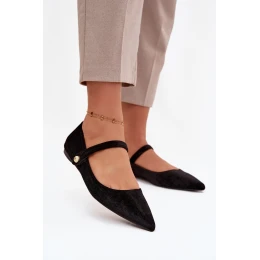 Sametové baleríny s páskem a zlatým detailem černé Gisanne