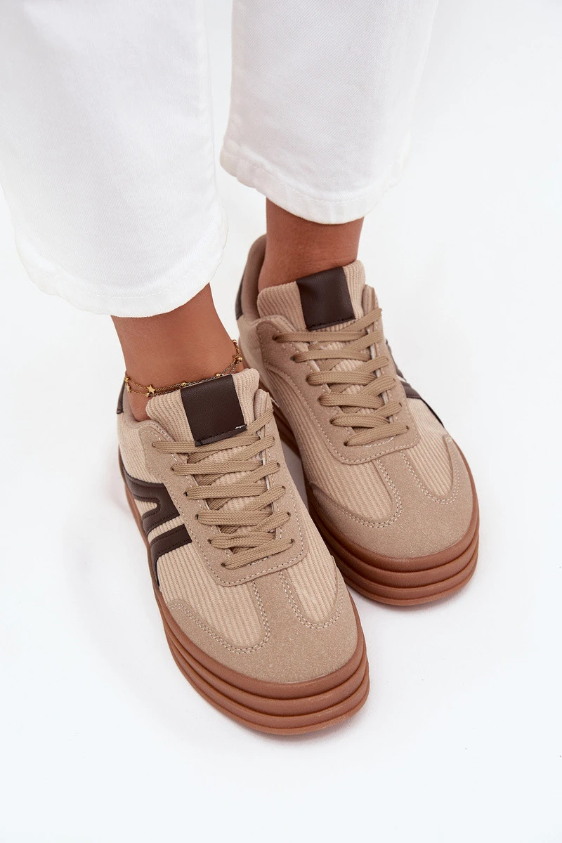 Sametové dámské tenisky na platformě Béžové model 21709523 - Boto