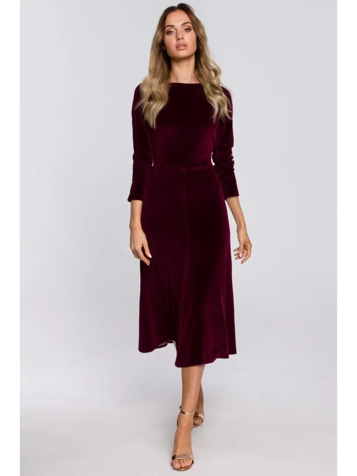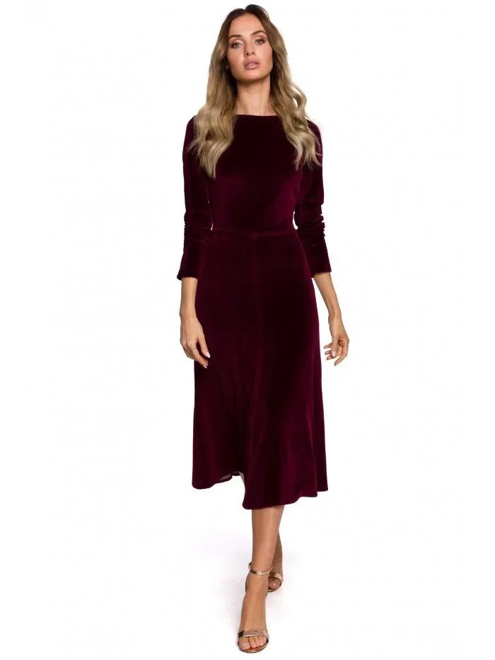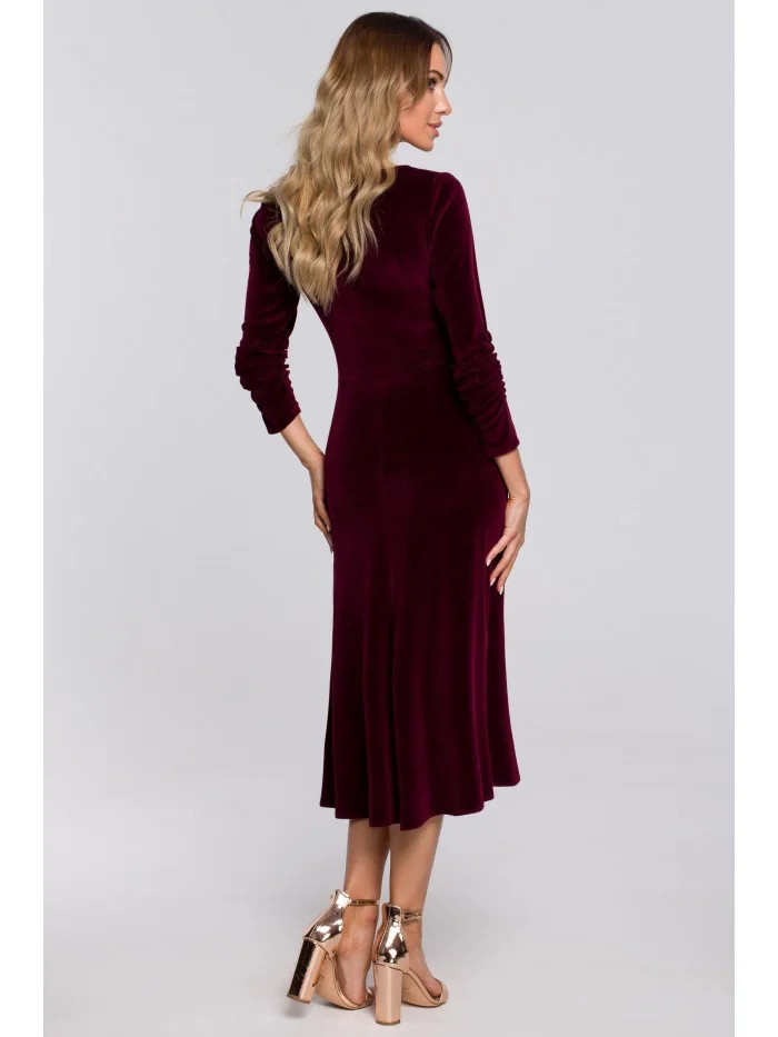 Sametové midi šaty s rukávy vínové model 21874758 - Moe