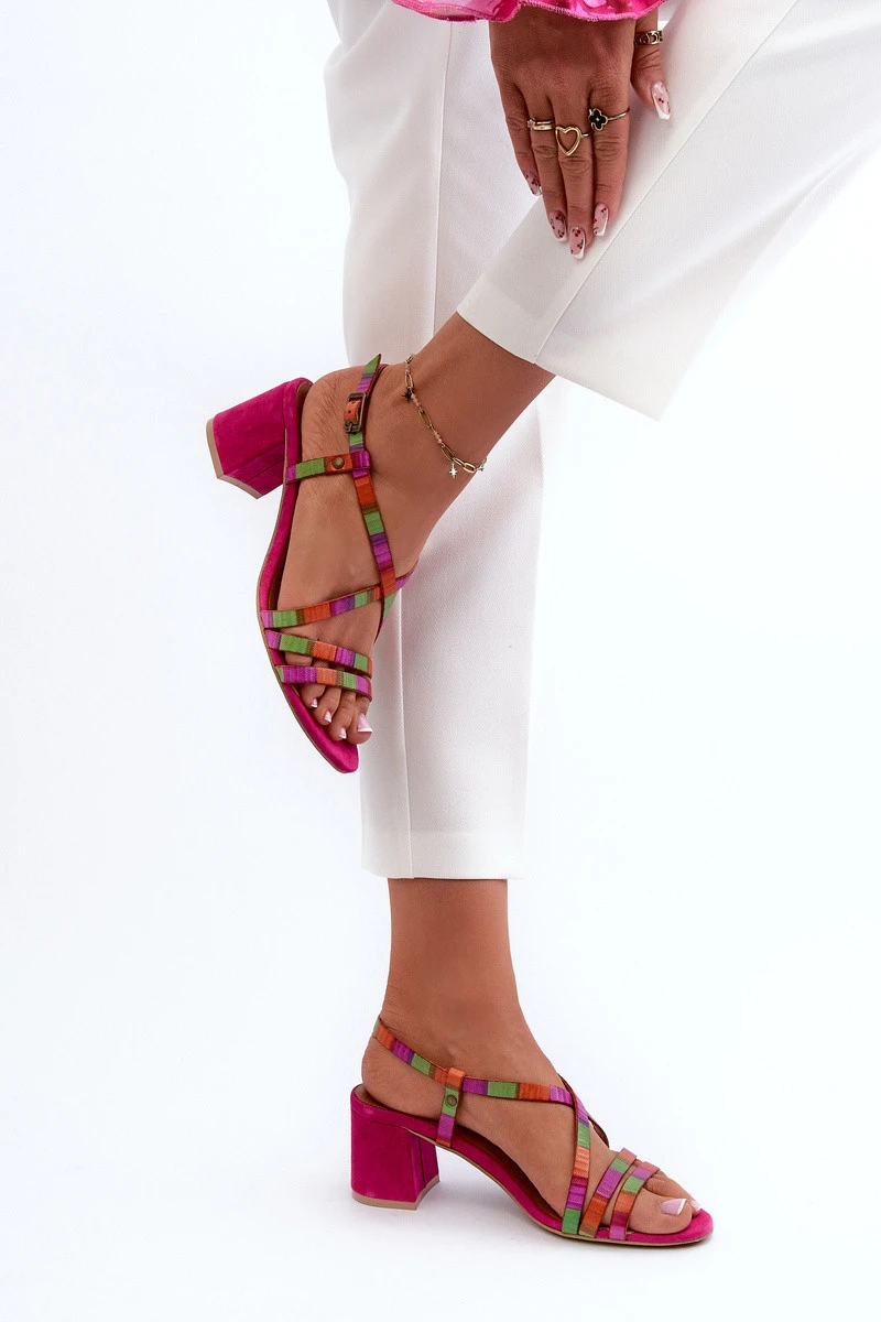Sametové sandály na nízkém podpatku Maciejka 06653-15 Fuksja