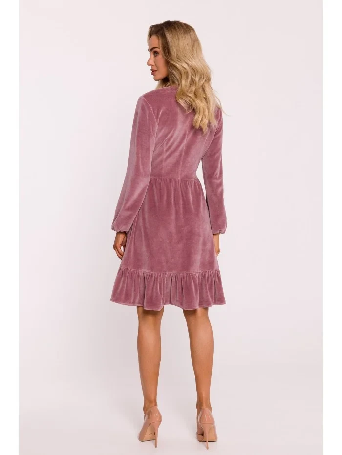 Sametové šaty s výstřihem do V růžové model 20555701 - Moe