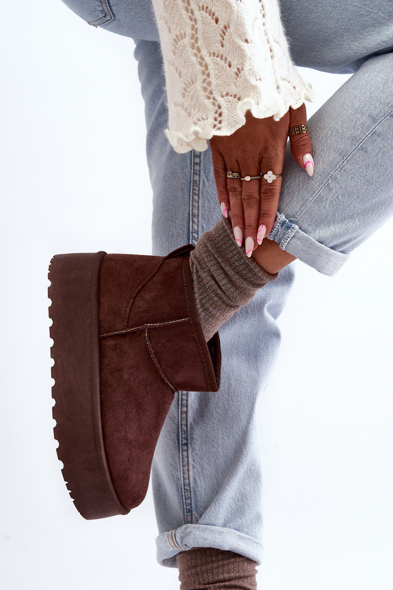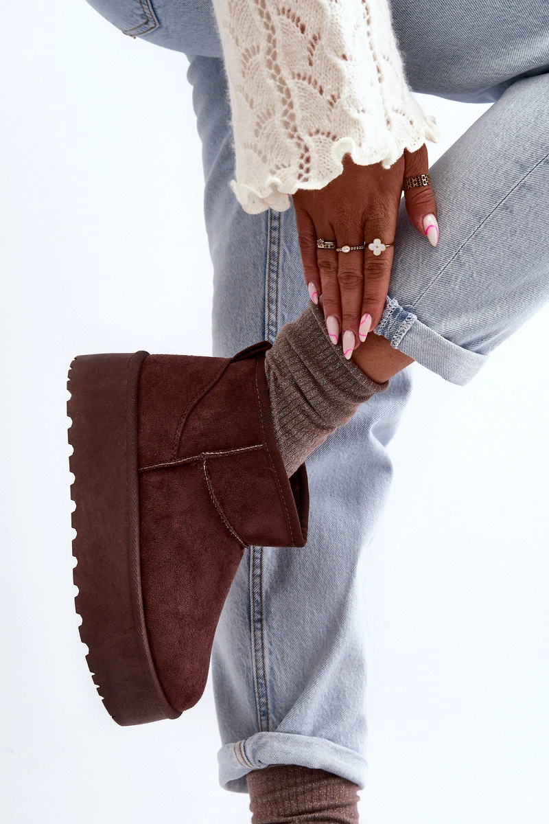 Dámské sněhové boty se skvěle hodí na mrazivé dny. Vyrobené z eko semiše. Vnitřek bot je izolován tlustým ekologickým kožešinou. Tento klasický model lze snadno přizpůsobit mnoha stylům. Boty mají masivní platformu, která dobře izoluje od podkladu. Při výběru velikosti se řiďte tabulkou velikostí.