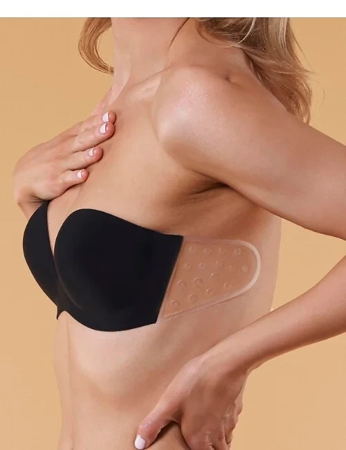 Tato podprsenka typu "bardotka" má vytvarované košíčky z pěny, které se dokonale drží na prsou díky vrstvě atestovaného silikonového lepidla. Díky efektu push-up a díky tomu, že podrsenka nemá ramínka a pásky, je možné tento model nosit pod různými typy oblečení. Doplňková transparentní křidélka na bocích zvětšují pocit pohodlní a komfortu a jsou zárukou lepší přilnavosti podprsenky k tělu. Po umytí lepící vrstvy je možné podprsenku Wings!bra nosit opakovaně. Dostupné velikosti košíčků: A - D.