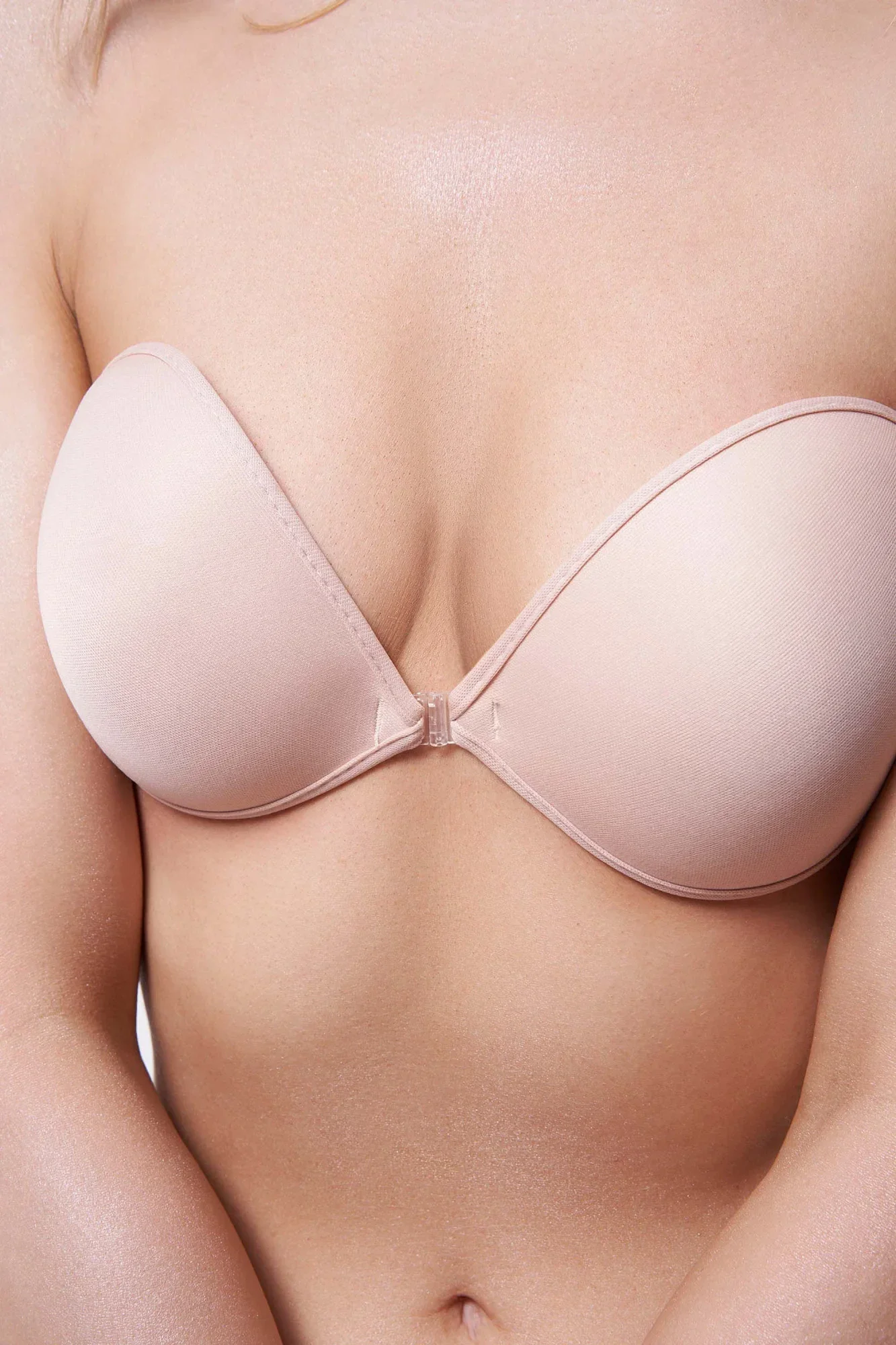 Samodržící látková podprsenka s funkcí push up. Dokonale přilne k tělu díky vnitřní straně podlepené speciálním zdravotně nezávadným lepidlem. Doporučujeme pro hluboké výstřihy a všechny kreace s otevřenými zády. Krásně sbírá a tvaruje prsa. Pod oblečením je prakticky neviditelný. Zapínání vpředu. Po vyjmutí ji stačí opláchnout vodou a lze ji znovu použít. K dispozici je výběr ze tří barev.