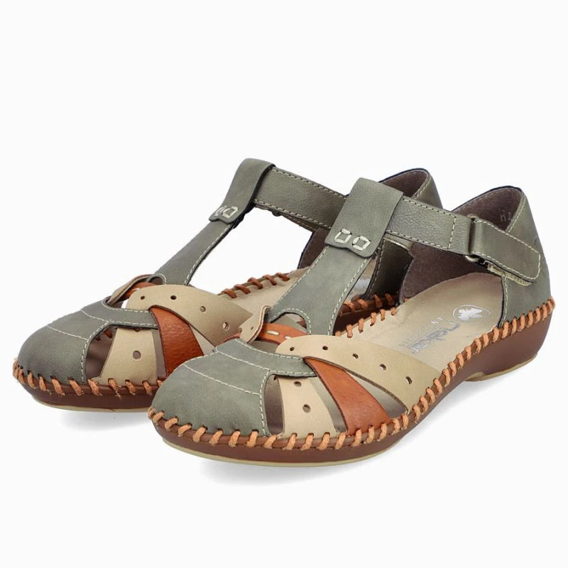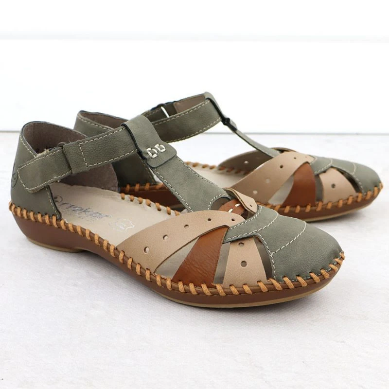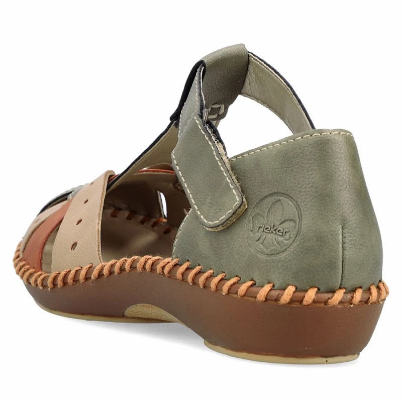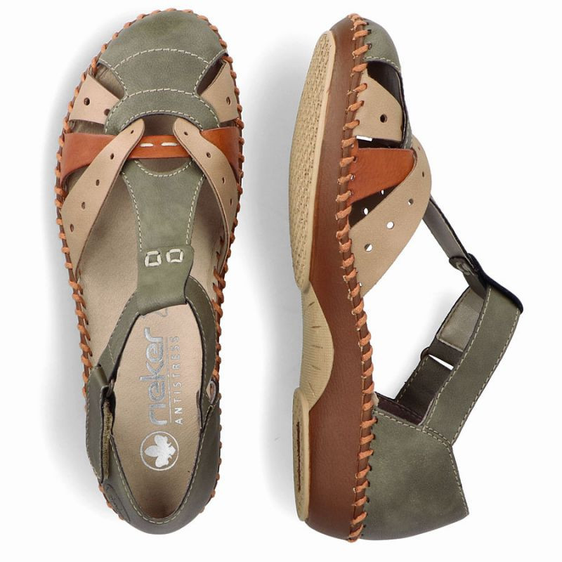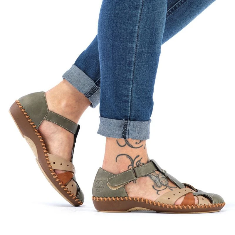 Sandały damskie komfortowe na rzepy zabudowane palce zielone Rieker M1655-54