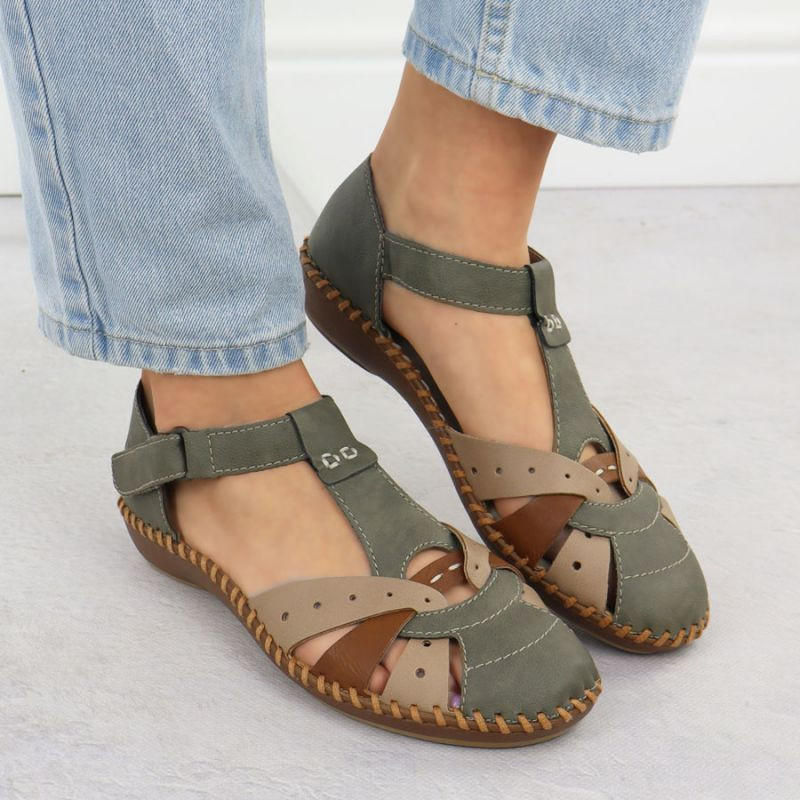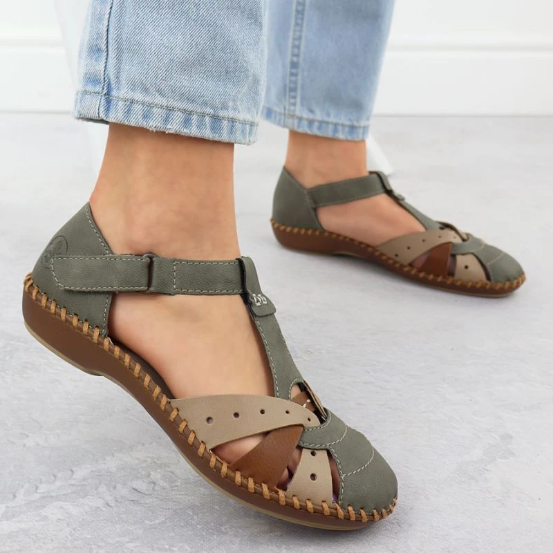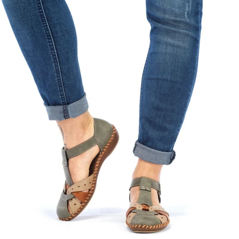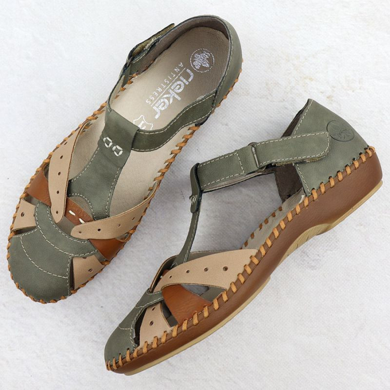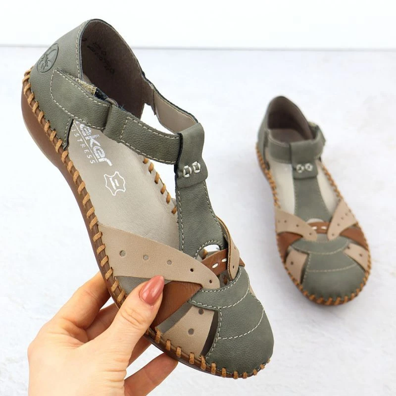 Sandały damskie komfortowe na rzepy zabudowane palce zielone Rieker M1655-54