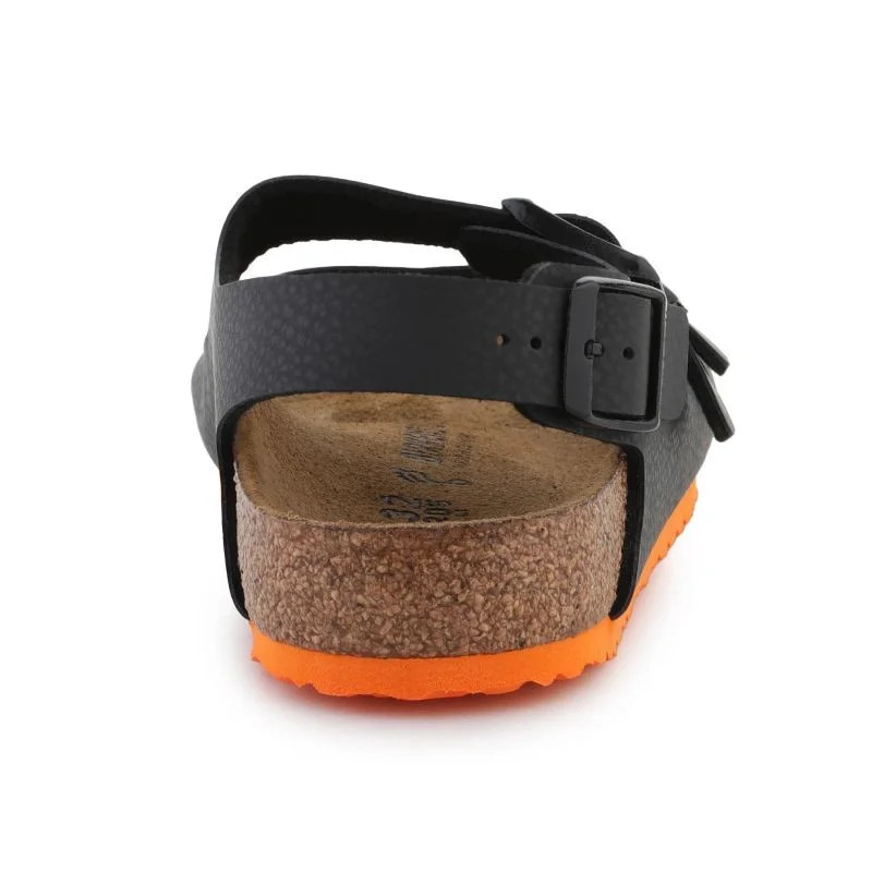 - Birkenstock Milano 1026896 Desert Soil Black Orange jsou dětské sandály, které kombinují pohodlí a styl.