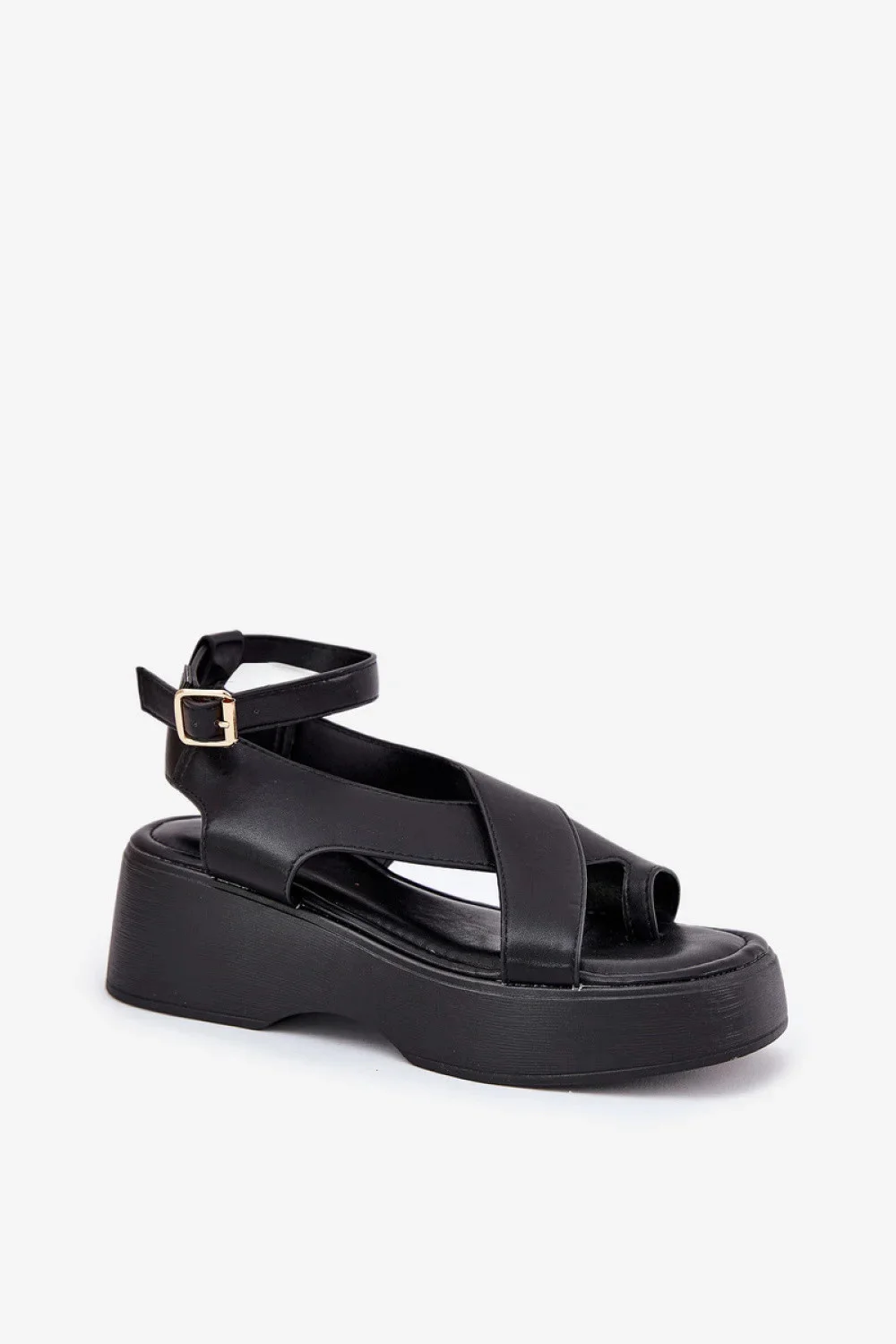 Dámské sandály z ekokože, osazené na platformě a jemném klínu, které spojují pohodlí s módním vzhledem. Zapínají se kolem kotníku na přezku s nastavitelným páskem, co umožňuje ideální přizpůsobení noze. Měkká stélka zajistí pohodlí po celý den. Ideální na teplé dny, tyto sandály skvěle ladí s šaty, sukni a kalhotami, dodávají každému outfitu lehkost.