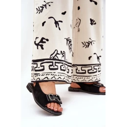 Dámské sandály značky Jezzi. Vyrobené z vysoce kvalitního ekologického semiše. Tento model se vyznačuje ozdobou umístěnou vpředu, která jim dodává zvláštní kouzlo. Nastavené na plochém podpatku. Měkká stélka zajistí pohodlí každým krokem. Zapínání na nastavitelný pásek s přezkou. Skvělé na různé slavnostní události a večerní vycházky, tyto sandály skvěle ladí jak s šaty, tak s kalhotami, zdůrazňující ženský styl a eleganci.