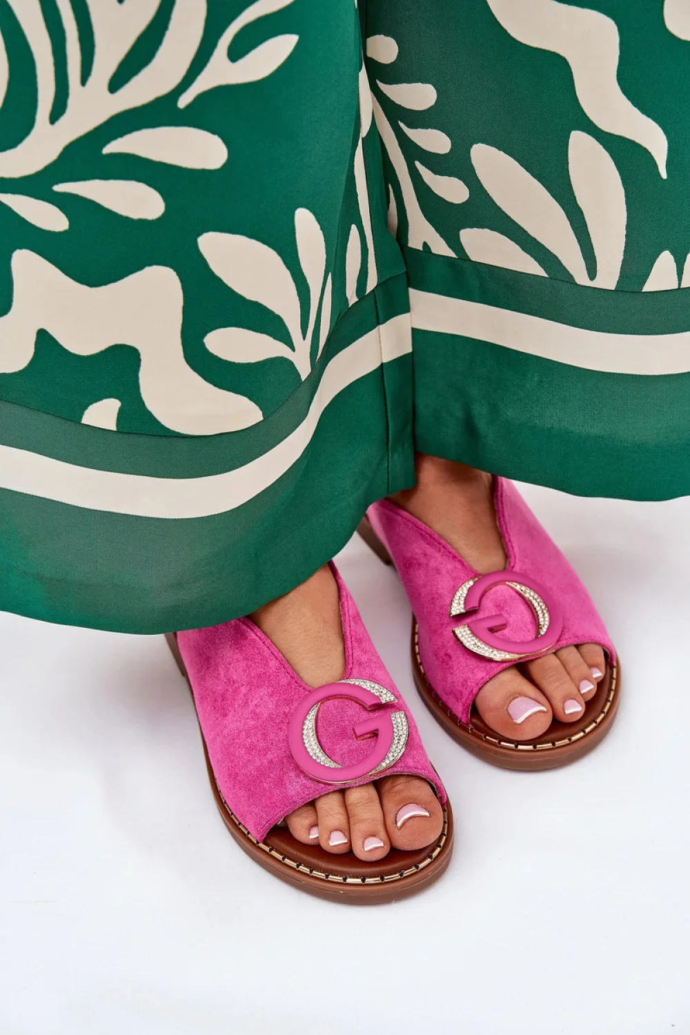 Ploché dámské sandály jsou vynikajícím návrhem na letní dny. Na přední straně se nachází ozdoba, která jim dodává jemné kouzlo, a nastavitelné řemínky s přezkou umožňují dokonalé přizpůsobení noze. Ekokůže stélky zajišťuje pohodlí po celý den. Tyto sandály kombinují styl s funkčností a představují skvělý doplněk jak každodenních, tak i elegantnějších stylizací.