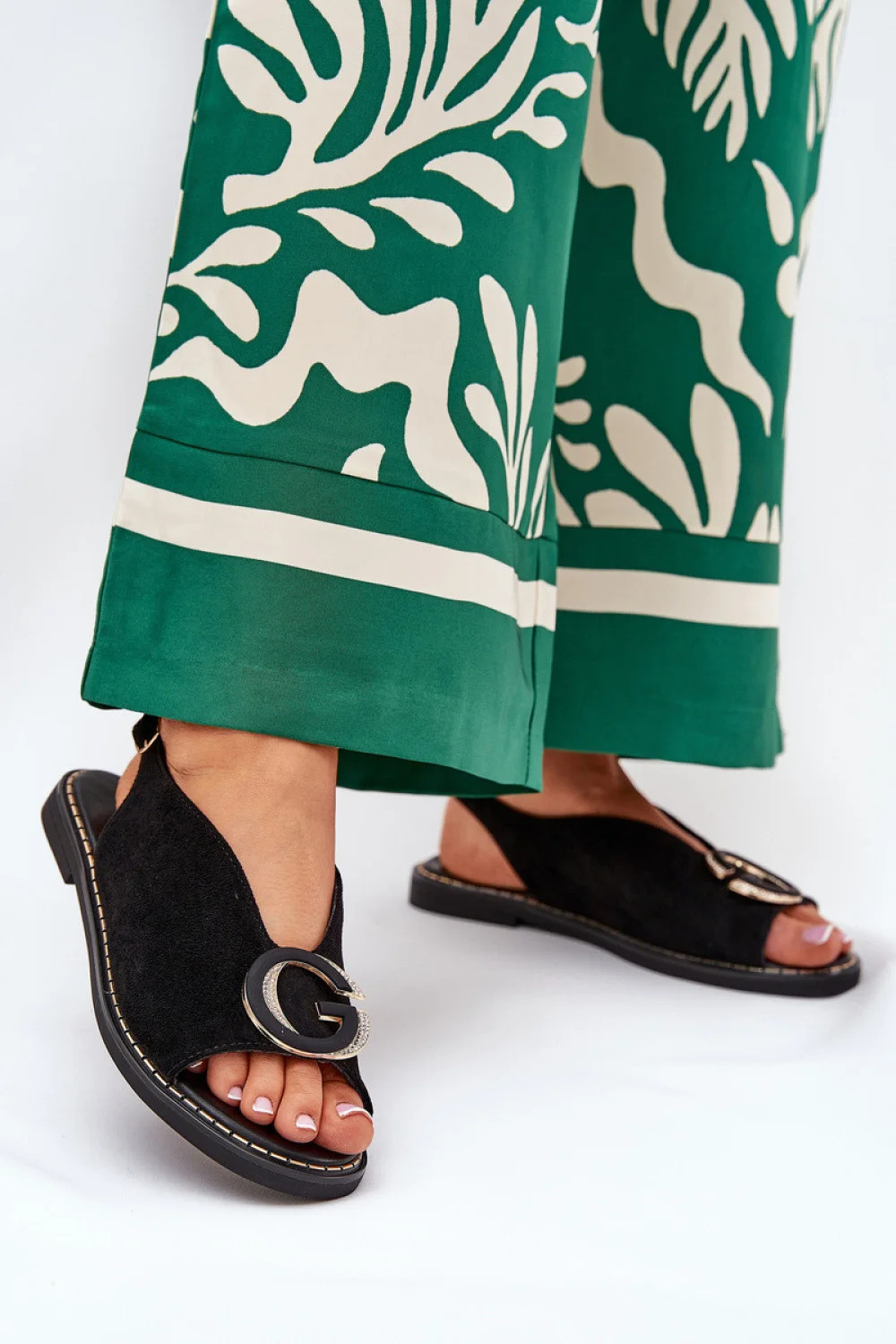 Ploché dámské sandály jsou vynikající volbou na letní dny. Na přední straně mají ozdobu, která jim dodává jemné kouzlo, a regulovatelný pásek s přezkou umožňuje dokonalé přizpůsobení noze. Ekologická kožená vložka zajišťuje komfort po celý den. Tyto sandály spojují styl s funkčností a představují skvělý doplněk jak k běžným, tak k elegantnějším stylizacím.