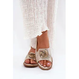 Lesklé dámské sandály značky S.Barski, vyrobené z ekokože, které spojují eleganci s pohodlím. Umístěné na ploché podrážce poskytují pohodlí po celý den. Zapínají se na přezku s nastavitelným popruhem, což umožňuje ideální přizpůsobení noze. Na přední části ozdoba, která sandálům dodává jemný šarm. Vložka Comfort Shoes zaručuje pohodlí a správnou tlumení. Tyto elegantní sandály budou skvělou volbou na letní výlety a formální události.