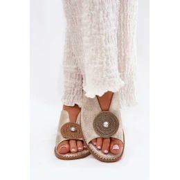 Dámské sandály z ekokůže od značky S.Barski. Umístěné na ploché podrážce, která spojuje pohodlí s elegancí. Vepředu ozdoba, která dodává výjimečný charakter. Kožená vložka Comfort Shoes zajišťuje pohodlí po celý den s dostatečnou tlumení. Zapínají se na sponu s nastavitelným páskem, což zaručuje ideální přizpůsobení noze. Ideální na teplé dny, tyto sandály budou skvělou volbou pro různé letní styly.