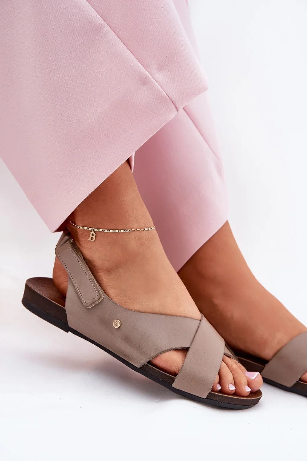 Klasické a pohodlné sandály byly vyrobeny z přírodní kůže. Mají zapínání na suchý zip. Tento model je usazen na plochém podpatku s protiskluzovou podrážkou. Dále na boku svršku se nachází emblém s logem. Sandály mají odkryté paty a prsty. Skvělý model na teplejší dny!