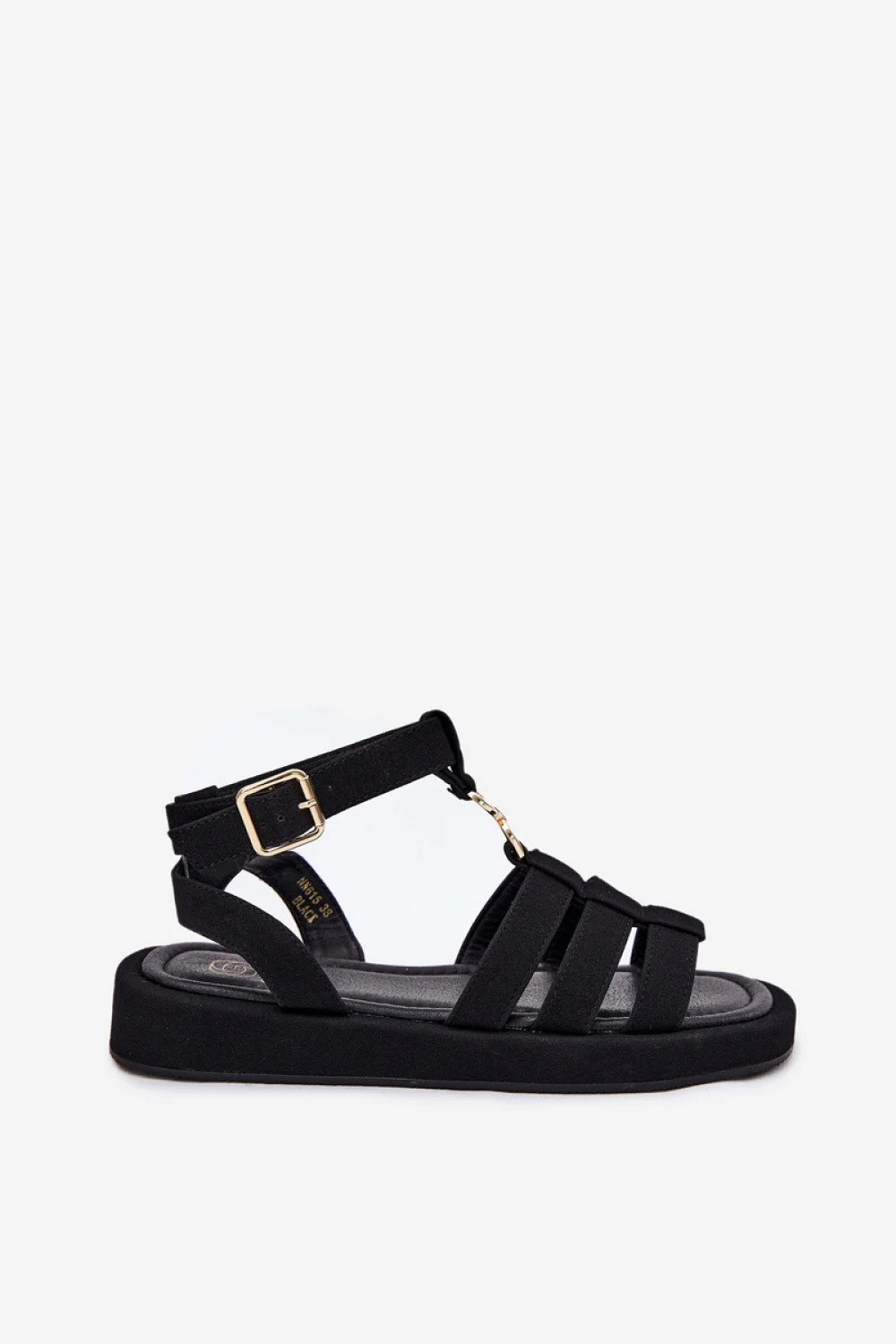 Dámské sandály vyrobené z ekologického semiše. Umístěné na jemné platformě, poskytují pohodlí a stabilitu po celý den. Zapínají se na přezku s nastavitelným popruhem, což umožňuje ideální přizpůsobení se noze. Vepředu je decentní zlatý detail, který spojuje popruhy. Měkká stélka zajišťuje pohodlí při chůzi. Skvěle se hodí jak k šatům, tak k kalhotám, vytvářejí stylový vzhled na každou příležitost.