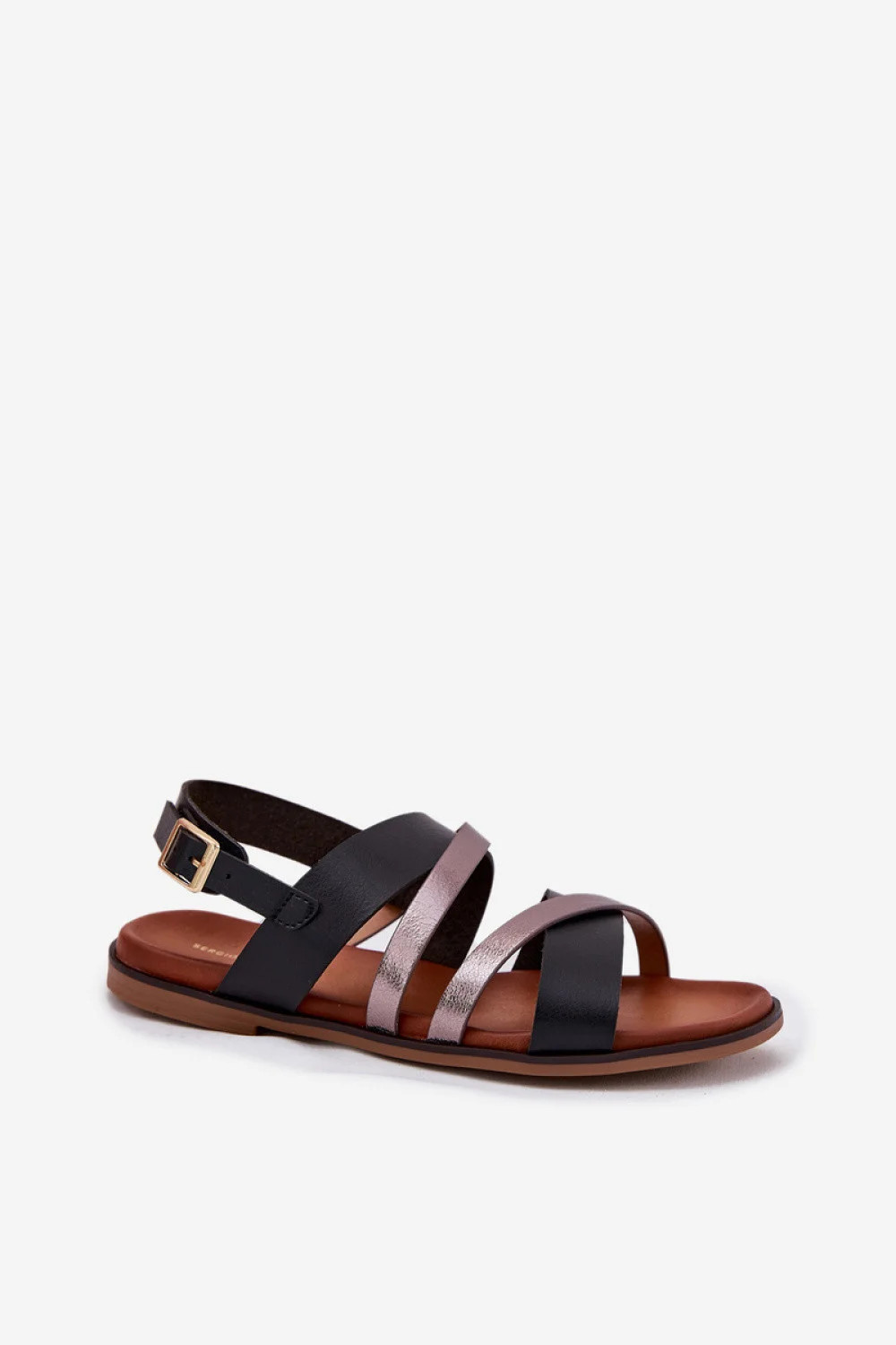 Stylové dámské sandály z ekokůže jsou skvělou volbou na teplé dny. Vyrobené z ekologické kůže. Umístěné na plochém podpatku poskytují pohodlí a pohodlí po celý den. Vepředu jsou jemně propletené popruhy, které dodávají charakter a lehkost. Sandály se zapínají na přezku s nastavitelným popruhem, což umožňuje ideální přizpůsobení noze.