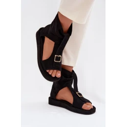 Sandály z eko zamszu jsou stylovou volbou na teplé dny a speciální příležitosti. Měkký materiál jim dodává decentní vzhled, a zavírací zip na zadní straně zajišťuje pohodlí a rychlé obutí. Přední část boty zdobí efektní popruh s zlatou přezkou, který přitahuje pozornost a dodává celku elegantní charakter. Tento model skvěle doplní jak denní, tak elegantnější outfit.