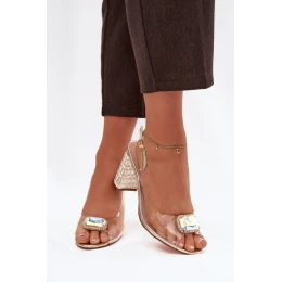 Elegantní průhledné dámské sandály jsou ideální volbou na speciální příležitosti. Stabilní sloupovitý podpatek zdobený třpytivými krystalky dodává celku luxusní charakter. Přední část je zdobena efektní bižuterní aplikací, která přitahuje pozornost a podtrhuje elegantní styl modelu. Kožená stélka zaručuje pohodlí i při delším nošení. Spona s nastavitelným popruhem umožňuje ideální přizpůsobení noze a stabilitu při každém kroku. Sandály skvěle doplní večerní outfit, elegantní šaty a kreace na slavnostní události, kde záleží na eleganci a dokonalosti detailu.