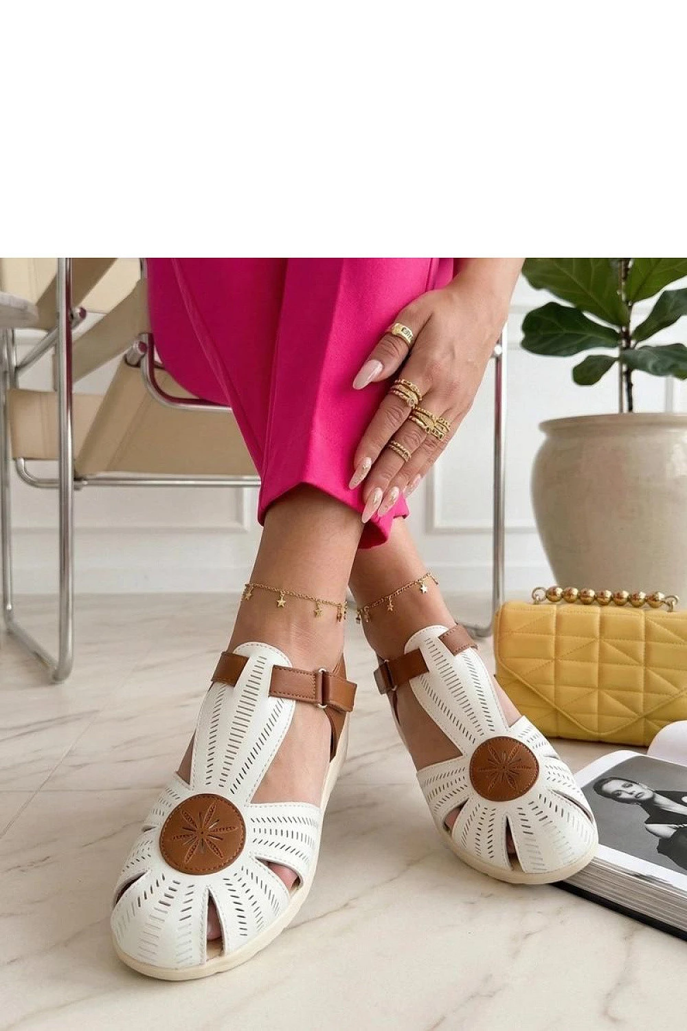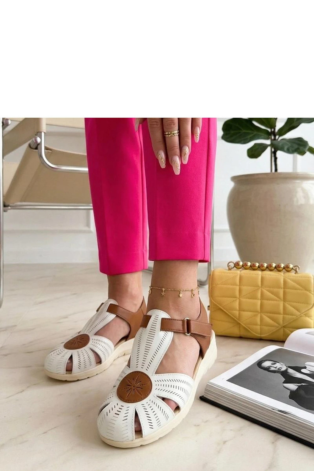 Pohodlné sandály se suchým zipem jsou ideální volbou pro teplé dny pro ženy, které ocení pohodlí a funkčnost. Vyrobené z ekologické kůže, jsou lehké, odolné a snadno se udržují, což je činí skvělou volbou pro každodenní nošení. Model s kulatou špičkou poskytuje prsty volnost a pohodlí při chůzi. Praktické zipové zapínání umožňuje rychlé obutí a snadné přizpůsobení se noze, což zvyšuje stabilitu a pohodlí při nošení. Nízký podpatek o výšce 3,5 cm jemně zvedá postavu, zároveň zaručuje pohodlí a správnou oporu po celý den. Vložka z ekologické kůže dále zvyšuje pohodlí nošení. Nízká výška obuvi znamená, že sandály se skvěle hodí jak do každodenního života, tak na letní procházky, představujíc praktické a univerzální doplnění šatníku.