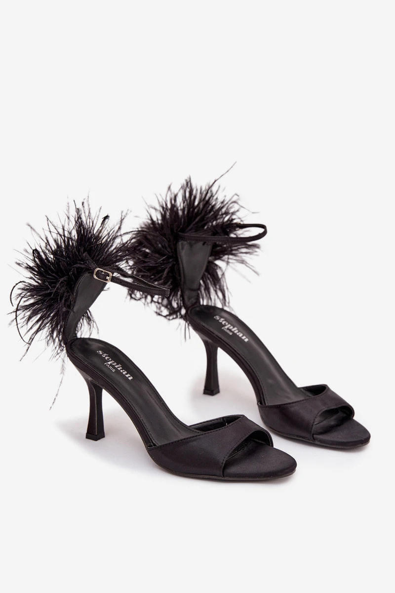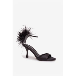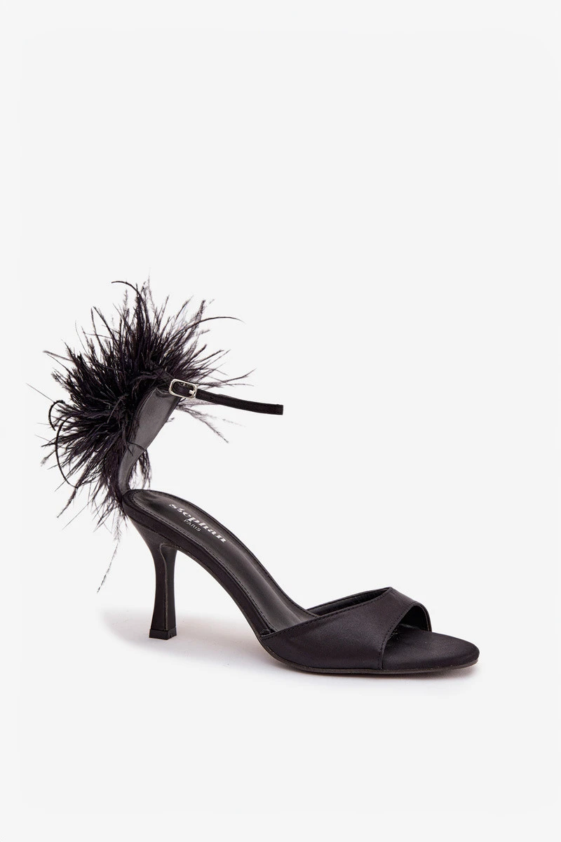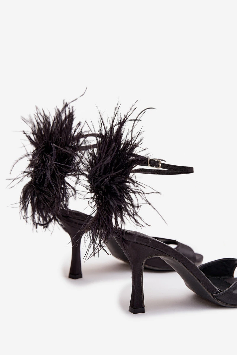 Sandály na jehlovém podpatku s peřím Černé Caelina