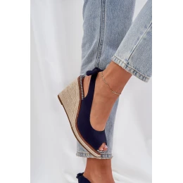 Sandály Na Klínu S Pletením Tmavě Modré Nanalis
