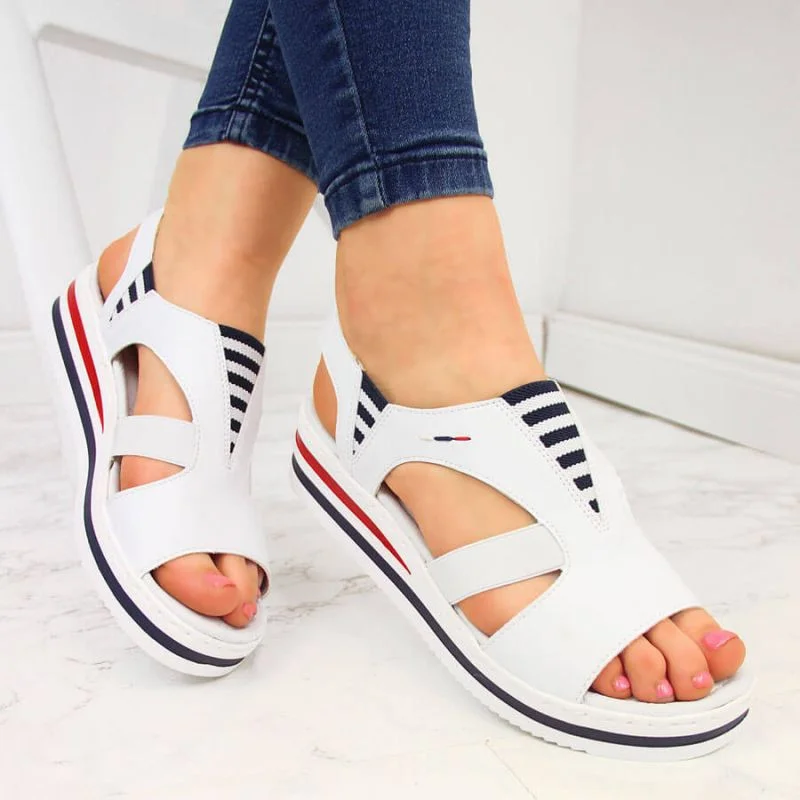 - Sandály jsou vybaveny elastickými pásky, takže je můžete přizpůsobit různému zaoblení chodidla.