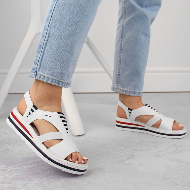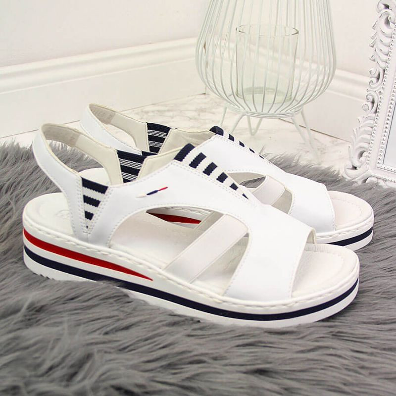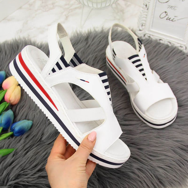 Rieker W V02Y5 bílé sandály na platformě s podpatky