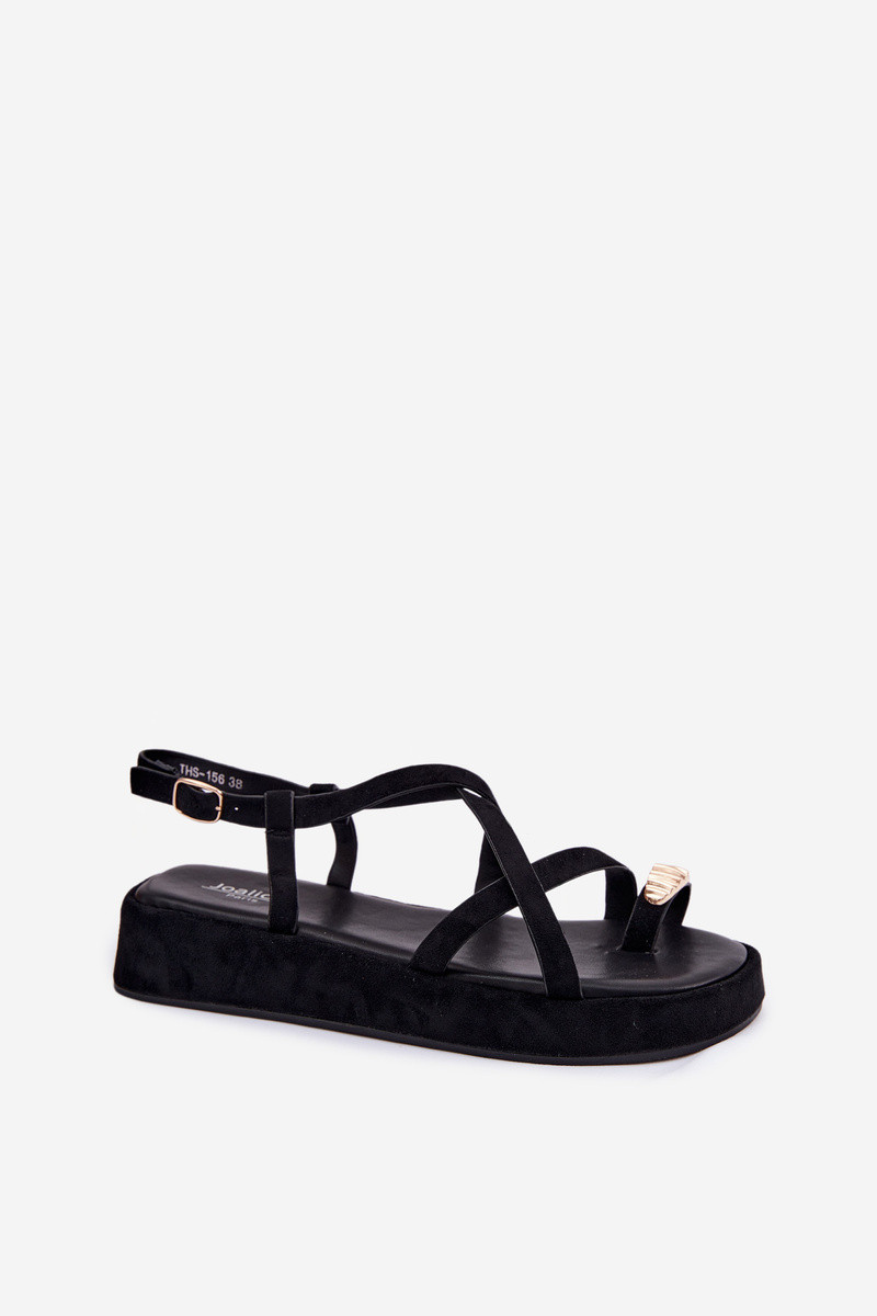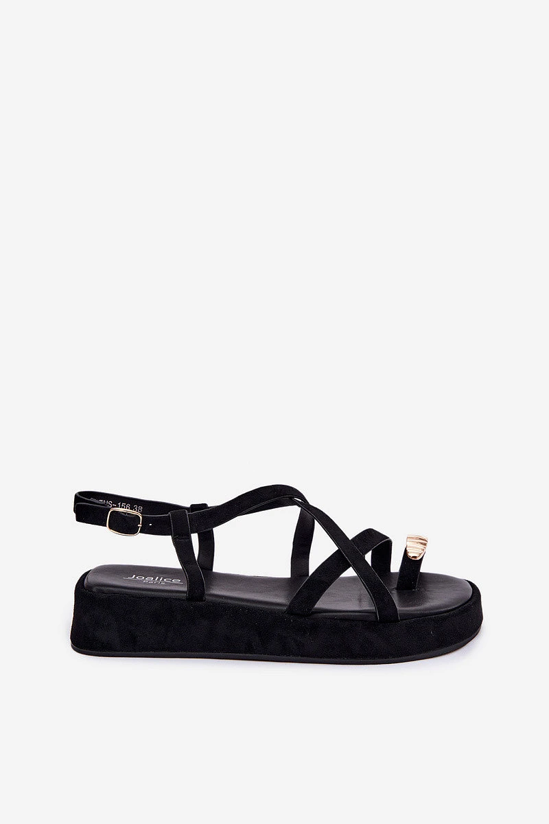 Módní dámské sandály vyrobené z příjemného na dotek eko semiše jsou skvělou volbou na teplejší dny. Stylový tvar na platformě nejenže přidává několik centimetrů výšky, ale také zajišťuje pohodlí a stabilitu při každodenním nošení. Model s pásky krásně sedí na noze, zvýrazňuje její tvar a dodává lehkost celému stylingu. Zlatý detail umístěný u prstů je elegantní akcent, který přitahuje pozornost a dodává jedinečný charakter. Měkká vložka zaručuje pohodlí při nošení i po mnoho hodin, takže model je vhodný jak na každý den, tak na letní výlety nebo dovolené. Při výběru velikosti se řiďte tabulkou velikostí.