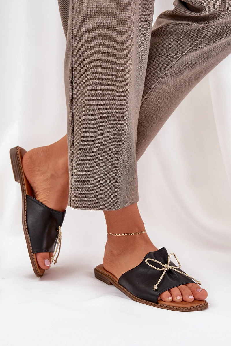 Sandály Na Ploché Podešvi S Ozdobnou Mašlí Černé Deonelis