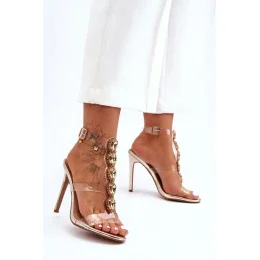 Tyto neobvyklé sandály by neměly chybět ve vašem šatníku! Mají plastový svršek. Zdobí je elegantní kamínky a kamínky imitující zirkony. Díky stélce z přírodní kůže se budou boty pohodlně nosit. Sandály jsou posazeny na jehlovém podpatku.