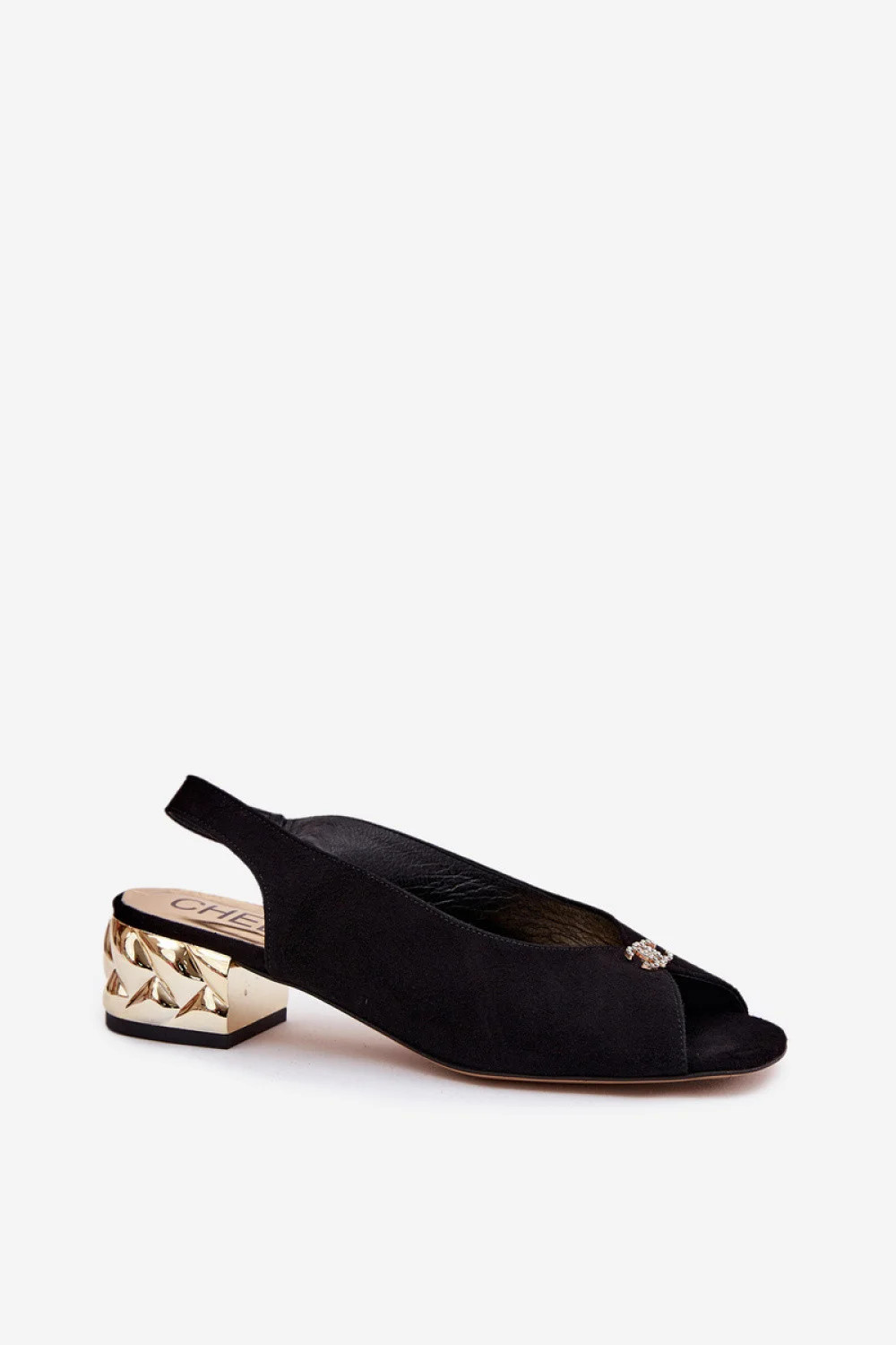 Dámské sandály od značky CheBello. Vyrobené z vysoké kvality přírodního semiše. Tento model se vyznačuje podpatkem, který dodává moderní charakter. Na přední straně je malý ozdobný detail. Velmi elegantní střih, který skvěle doplní outfit s šaty i kalhotami. Skvělé na různé slavnostní události a večerní vycházky.