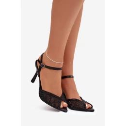 Večerní dámské sandály na podpatku jsou ideální volbou na speciální příležitosti, kdy záleží na lesku a eleganci. Štíhlý podpatek jemně prodlužuje nohy a dodává ženské siluetě lehkost. Přední část z jemného síťování, zdobená efektním, třpytivým detail, přitahuje pohled a dodává celku výjimečný charakter. Zapínání na sponu s nastavitelným páskem zaručuje dobré přizpůsobení a pohodlí nošení. Jedná se o model, který skvěle doplní večerní stylizace a umožní ti cítit se výjimečně.