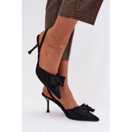 Dámské sandály vyrobené z textilního materiálu jsou výjimečným návrhem pro speciální příležitosti. Klenutý podpatek krásně zdůrazňuje siluetu a špičaté špičky opticky prodlužují nohy. Ozdobná mašle vpředu dodává celku ženské kouzlo. Tento model se skvěle hodí na slavnostní události, večírky a večerní vycházky, představující stylový doplněk mnoha outfitů.