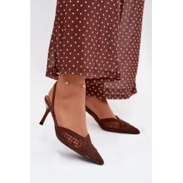 Dámské sandály vyrobené z efektního pleteného vzoru jsou skvělým návrhem na různé příležitosti. Konečná jehla krásně zjemňuje postavu a dodává stylizaci ženskou lehkost. Špičaté špičky zdůrazňují klasický, elegantní střih a dodávají celku nadčasový vzhled. Tento model se skvěle hodí jako stylový doplněk k šatům i kalhotám.