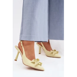 Dámské sandály vyrobené z ekokože jsou model navržený s ohledem na ženské elegantní stylizace. Špičaté špičky zdobené mašlí dodávají subtilní kouzlo a zdůrazňují štíhlou linii nohy. Podpatek ve tvaru jehly opticky prodlužuje postavu, a pásek s přezkou s možností nastavení umožňuje přizpůsobení noze, což zajišťuje pohodlí a stabilitu. Jedná se o stylové sandály, které se skvěle hodí na svatby, večerní vycházky, slavnostní události a elegantní stylizace do práce.