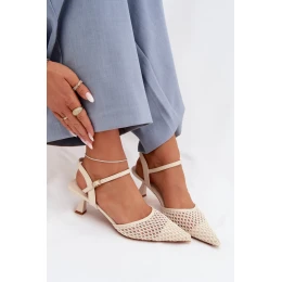 Dámské sandály vyrobené z kombinace eko kůže a textilního materiálu jsou stylovým doplňkem pro ženské outfity. Kombinace materiálů zajistí estetický vzhled a pohodlí při nošení, což znamená, že se model skvěle hodí na různé příležitosti. Boty mají štíhlý podpatek, který jemně zjemňuje postavu a dodává lehkost krokům. Špičaté špičky zdůrazňují elegantní charakter, a pásek se sponou s regulací umožňuje správné přizpůsobení noze. Jsou to efektní sandály, které skvěle doplní jak večerní, tak elegantní letní outfity.
