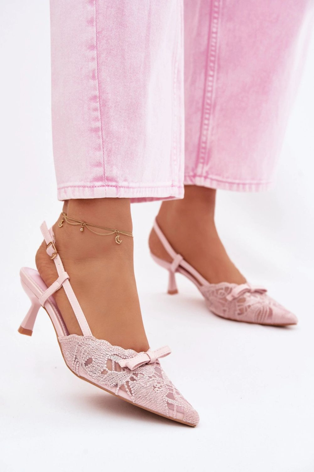 Krajkové dámské sandály na nízkém podpatku jsou mimořádně ženským a elegantním návrhem, ideálním na speciální příležitosti. Jemná krajka jim dodává romantický charakter a decentní tvar krásně zdůrazňuje nohu. Rozkošná mašlička vpředu celku dodává lehkost a dívčí půvab, vytvářející stylový a zároveň nadčasový efekt. Díky nízkému podpatku model zajistí pohodlí při nošení, což znamená, že se skvěle hodí i na delší slavnosti. Jedná se o skvělou volbu na svatby, recepce a další speciální události, kde se počítá s elegancí a pohodlím.