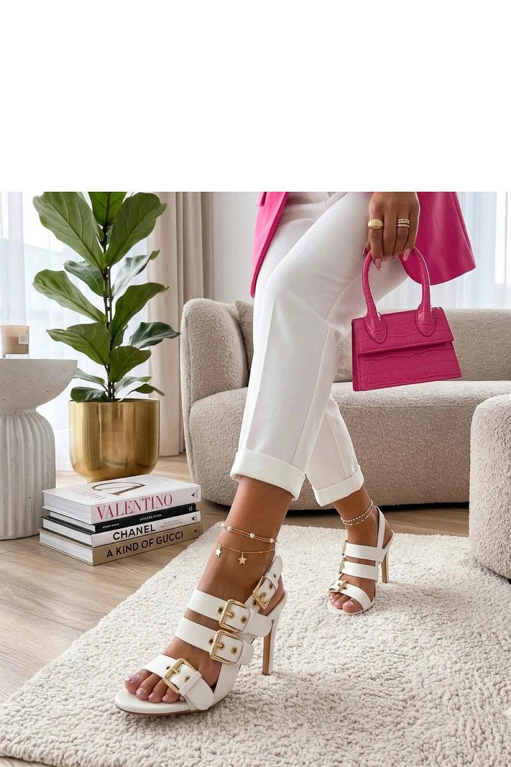 Překrásné sandály vyrobené z ekologické kůže jsou ideální volbou pro ženy, které chtějí zdůraznit svou eleganci a ženský styl. Jejich štíhlý tvar skvěle ladí s večerními i sofistikovanějšími stylizacemi. Model je vybaven přezkou a dalšími nastavitelnými popruhy, které umožňují perfektní přizpůsobení noze, zajišťují stabilitu a pohodlí při nošení. Jemné popruhy decentně zdůrazňují nohu, přidávají lehkost a eleganci. Vysoký jehlový podpatek o výšce 10 cm krásně prodlužuje nohy a zdůrazňuje siluetu, dodávají celku neuvěřitelně ženský charakter. Je to skvělá volba na speciální události, kdy záleží na efektním vzhledu a eleganci.