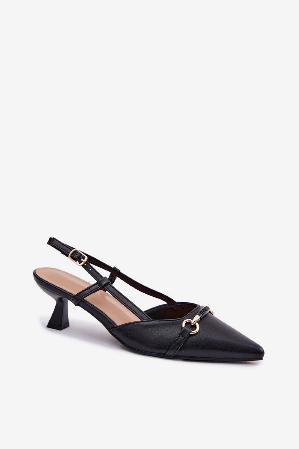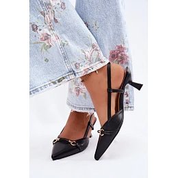Elegantní dámské sandály vyrobené z vysoce kvalitní ekokože jsou ideální volbou pro ženy, které ocení styl a jemnou ženskost. Model je vyznačen špičatými, zakrytými špičkami, které dodávají celku eleganci a opticky zjemňují nohu. Nízký, štíhlý podpatek zaručuje pohodlí při nošení po celý den, zároveň zdůrazňuje elegantní charakter obuvi. Zapínání na sponu s nastavitelným popruhem umožňuje ideální přizpůsobení noze, a ozdobný detail vpředu dodává stylový dojem.
