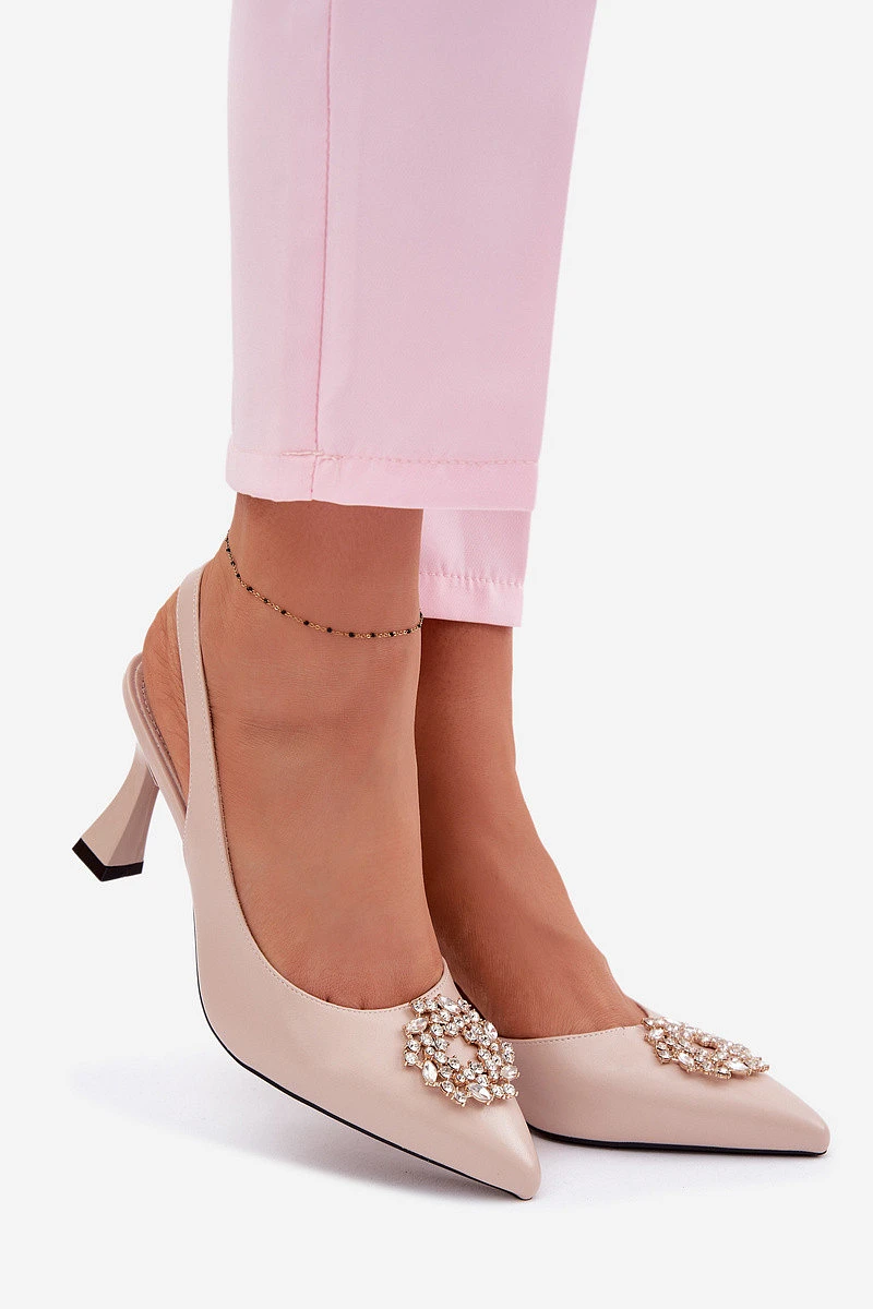 Sandály na podpatku s bižuterním zdobením Vinceza Béžové